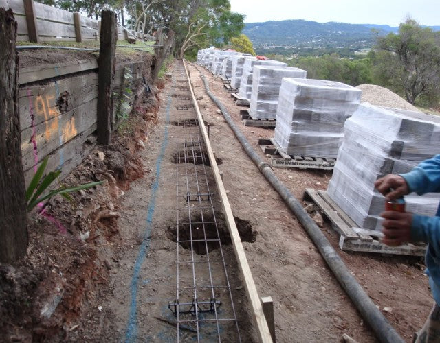 The construction phase presented significant access challenges, given the wall's remote location on a steep hill adjacent to a cow paddock. Despite these hurdles, our team expertly navigated the logistical complexities, including pumping concrete over a distance of 110 metres. The completed Diamond concrete block retaining wall, stretching over 50 metres in length and up to 1350mm in height, stands as a testament to our team's dedication and skill, significantly enhancing the safety and appearance of the estate's croquet lawn.