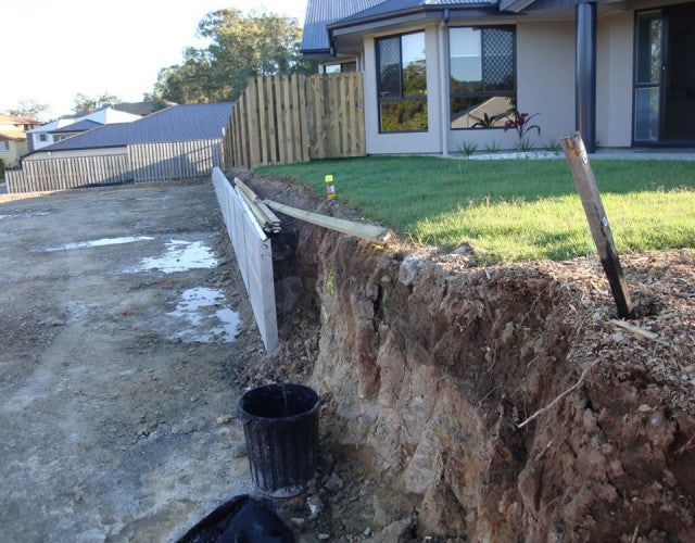 Upon consultation, Australian Retaining Walls proposed a Concrete sleeper wall with “H Beam” posts, deemed most suitable for its slim profile and feasibility on the rocky site. The wall's 100mm thickness was a critical factor in conserving space, allowing for the planned garage placement while adhering to boundary regulations.