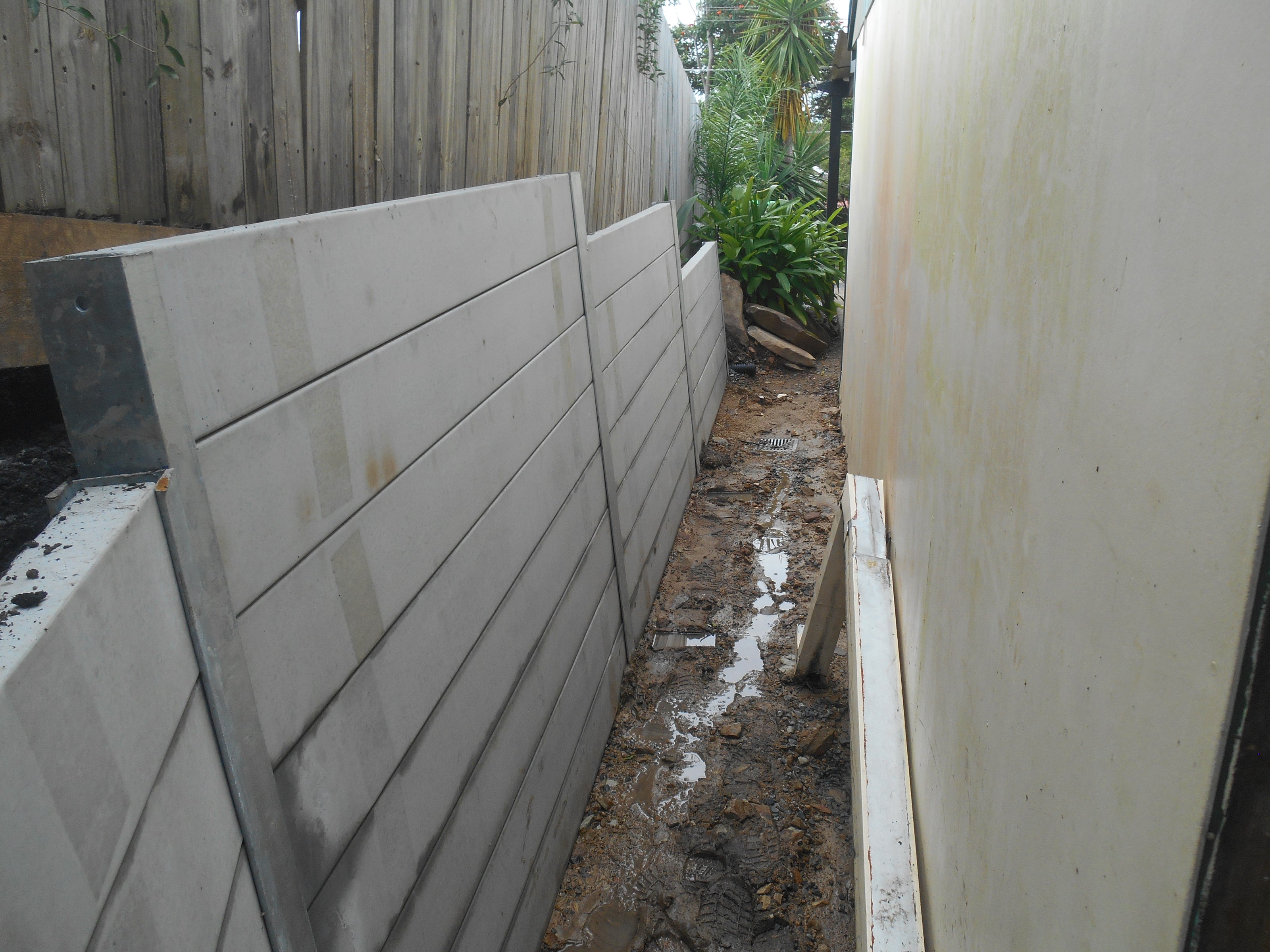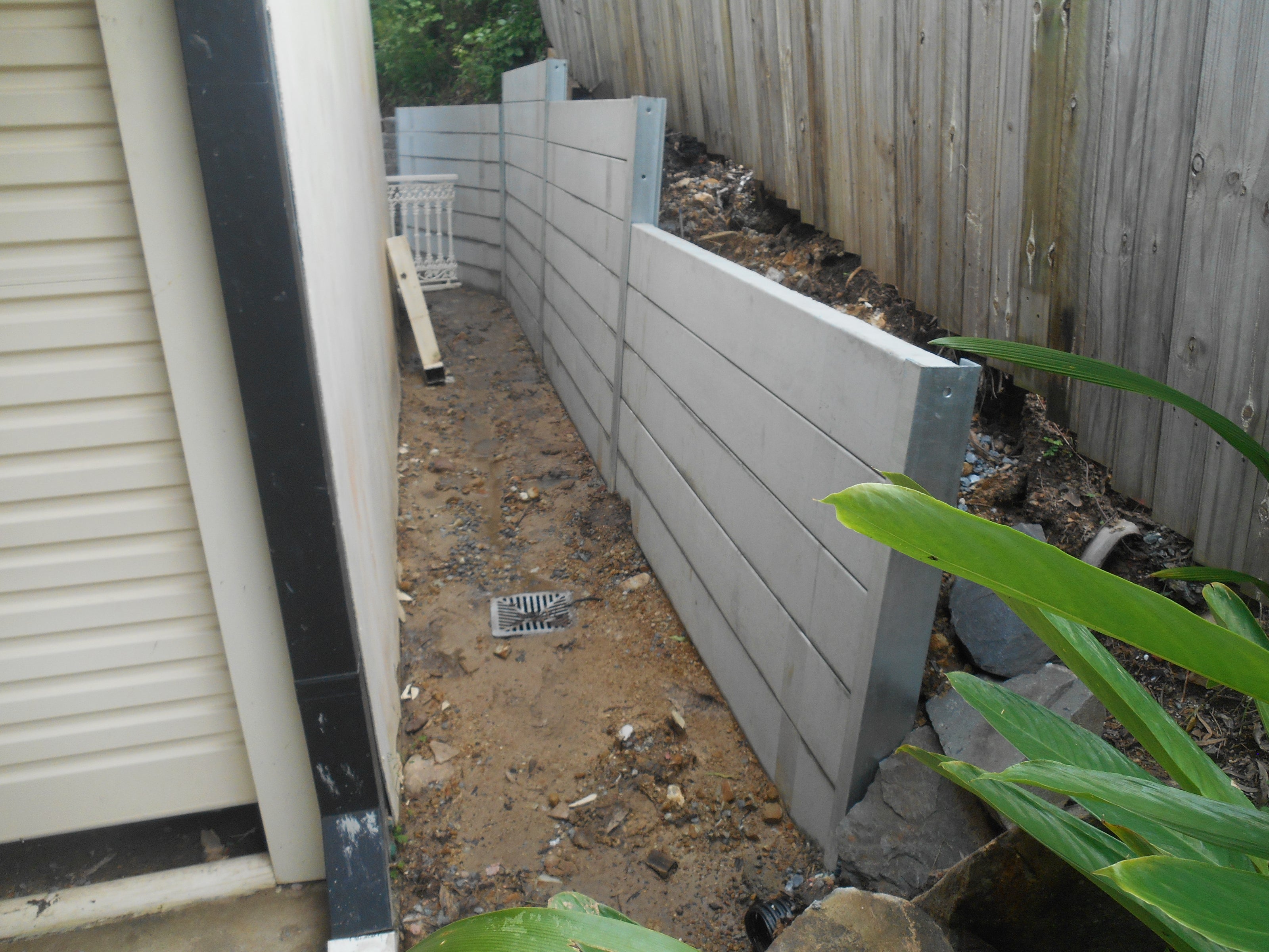 - Type of Retaining Wall: Concrete Retaining Wall using concrete sleepers and WindsorStone interlocking blocks
