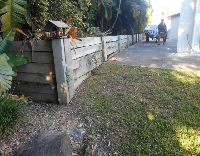 The homeowners in Currumbin, Gold Coast, had recently renovated the exterior of their house, leaving the old timber retaining wall at the rear looking outdated and unappealing. They desired a more natural and aesthetically pleasing solution to complement their new renovations.