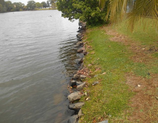 The client at a lakeside property in Benowa, Gold Coast, was struggling to enjoy her newly landscaped garden due to aggressive black swans that had taken a liking to the area. The previous Rip Rap Rock Armouring had deteriorated over time, sliding into the lake and creating an accessible path for the swans and other local wildlife.