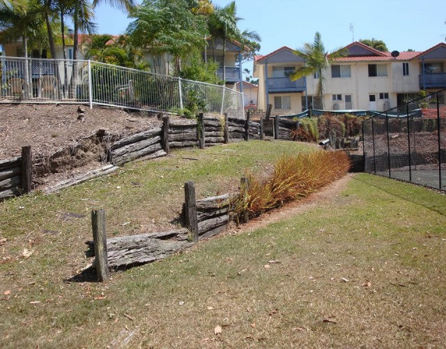 The body corporate of a unit complex faced the challenge of replacing old railway sleeper timber retaining walls that had reached the end of their functional lifespan. Initially, a local engineer had proposed a design, but the cost was prohibitive for the unit owners, prompting them to seek a more economical solution.
