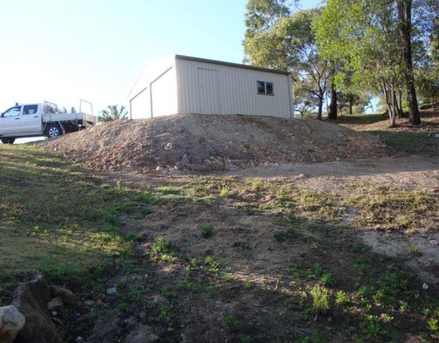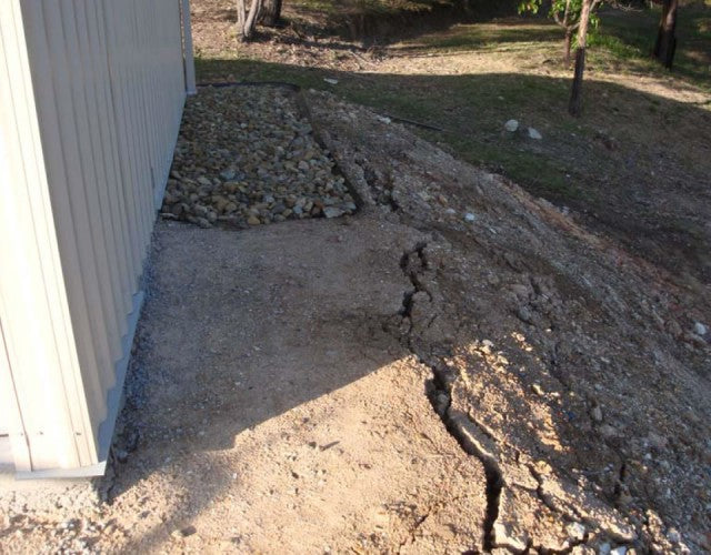 The owners of an acreage property noticed significant erosion and unsettling of the earth below their newly installed garage, highlighted by a concerning crack developing in the ground. They needed a reliable and cost-effective solution to prevent further damage and ensure the stability of their property.