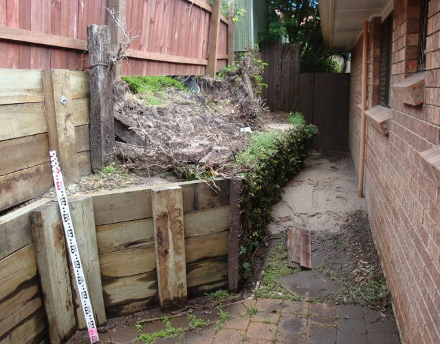Understanding the urgency of the situation and the financial limitations of the homeowner, we opted to repair the collapsed section with a C.C.A. H4 treated hardwood timber sleeper wall. This material choice provides both affordability and resilience, making it suitable for the owner's immediate and long-term needs. Our team acted swiftly to remove the debris and stabilise the area to prevent further damage.
