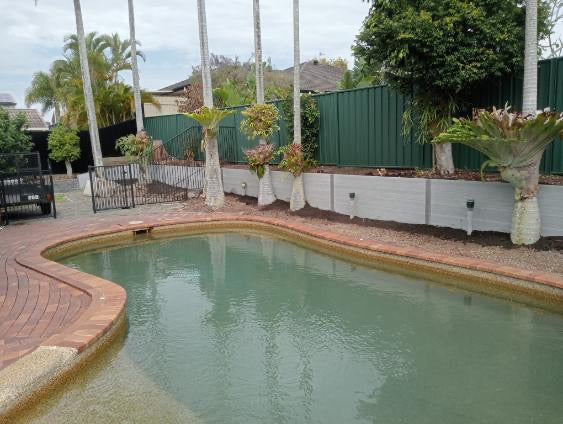 Given the tight space and lack of machinery access, our team had to rely entirely on manual labour to remove the old wall and install the composite sleeper retaining wall. Careful planning was required to ensure that all materials were transported safely and efficiently to the site. Despite the hot conditions, we worked methodically, ensuring a precise installation without disturbing the pool area. The composite sleepers provided the perfect balance of strength and aesthetics while guaranteeing protection against termites.